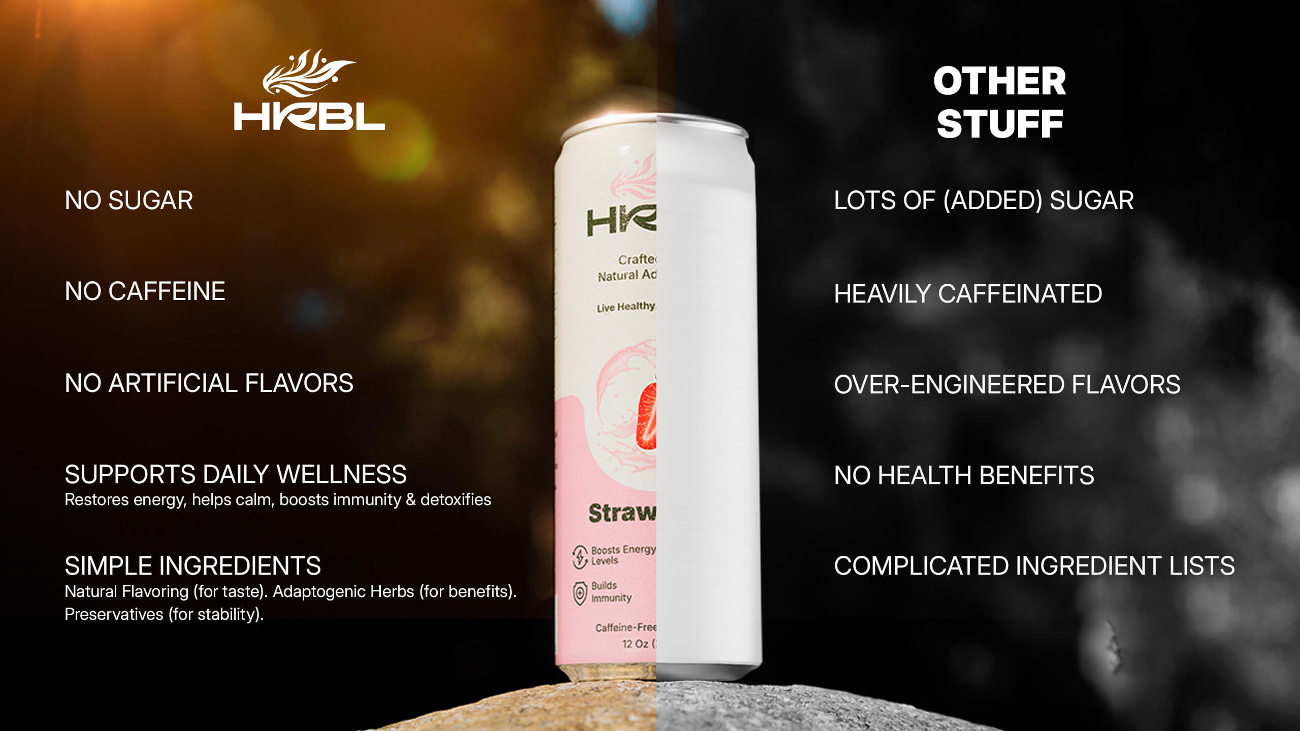 HRBL is the sparkling beverage that puts you in tune with your natural rhythms. Made with a lineup of super-powered adaptogens, HRBL helps bring out your body’s best.